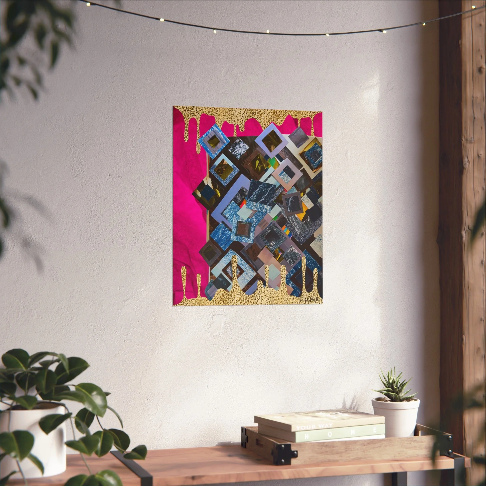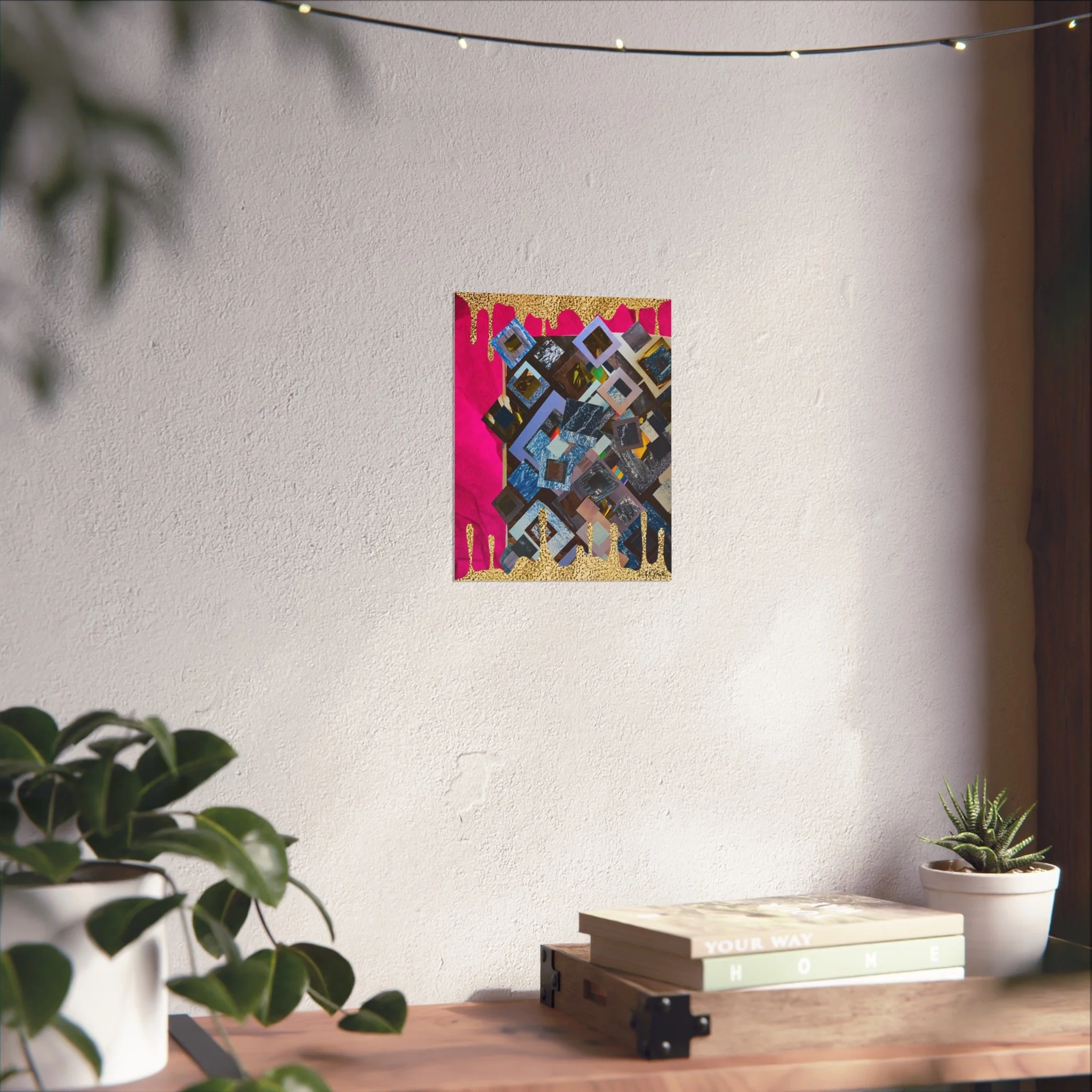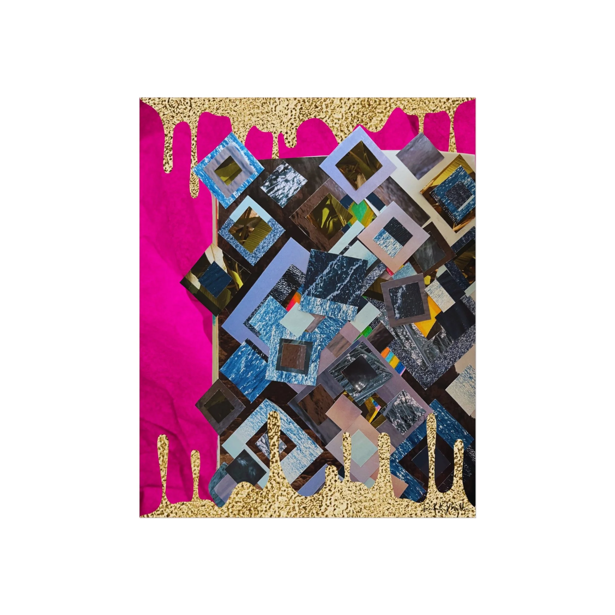 Meander captures the quiet journey of exploration and self-discovery. A watercolor path winds through the composition, inviting the viewer to follow the gentle curves of the journey, while mushrooms and foraged forest elements add texture and life. A woman walks this path, embodying a sense of freedom and connection to nature. This piece speaks to the ways we navigate our inner landscapes—sometimes uncertain, yet always moving forward—finding beauty and meaning in the smallest details.