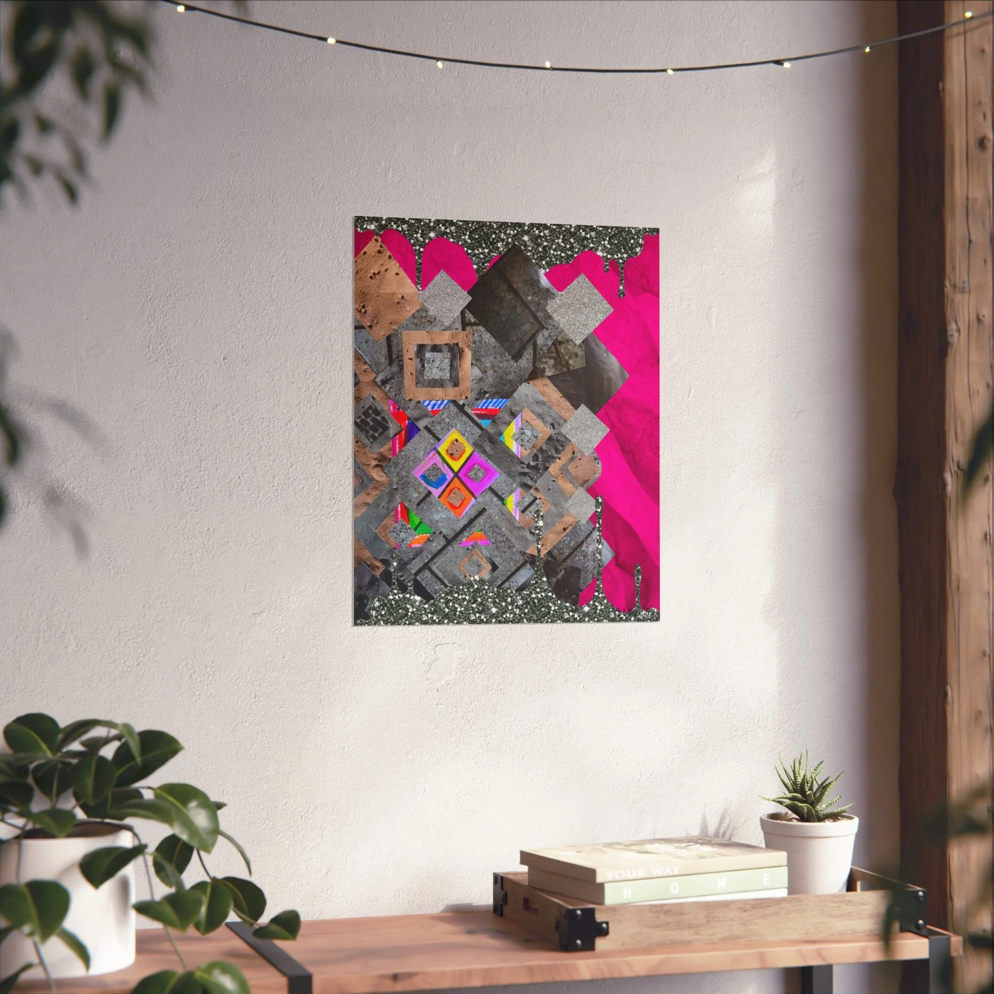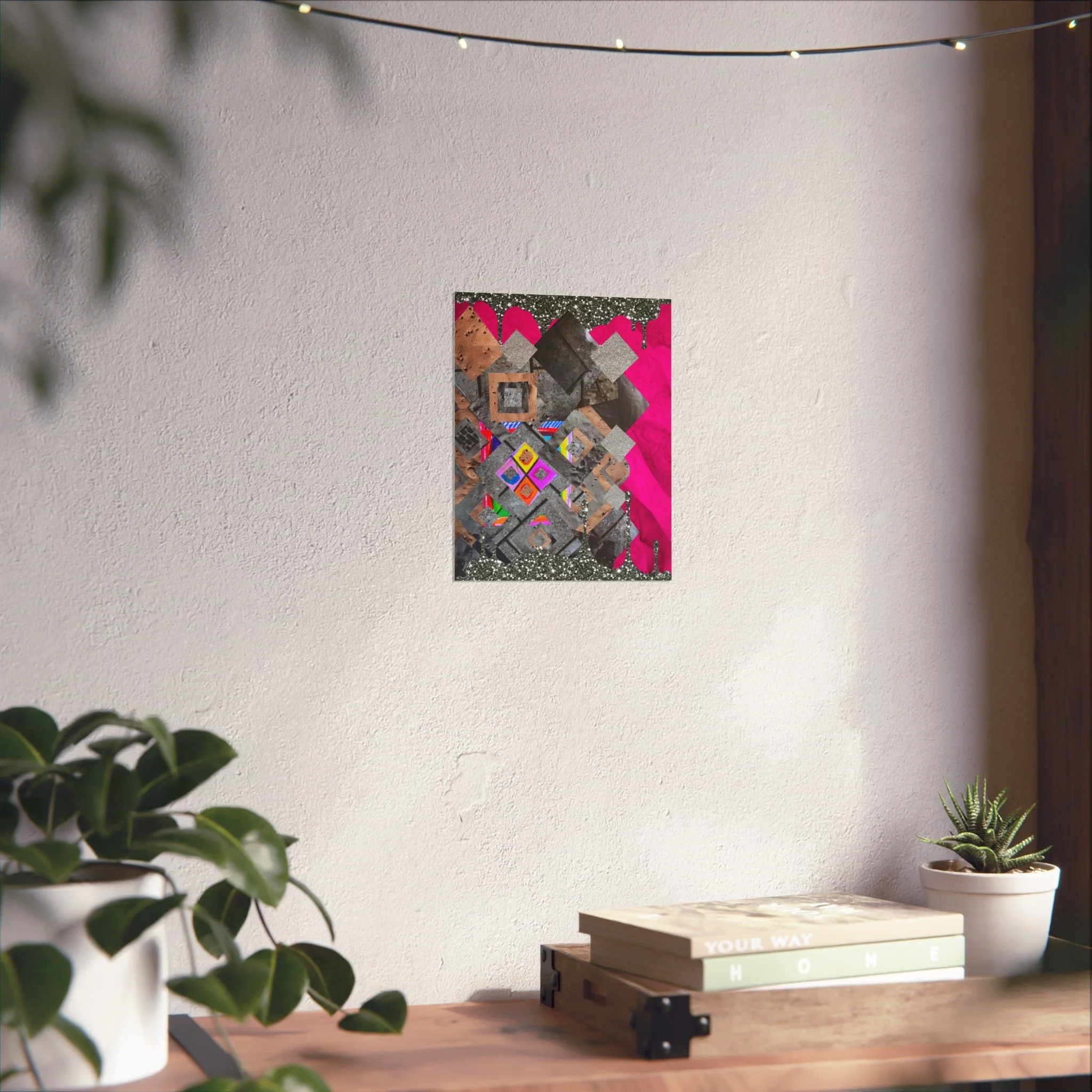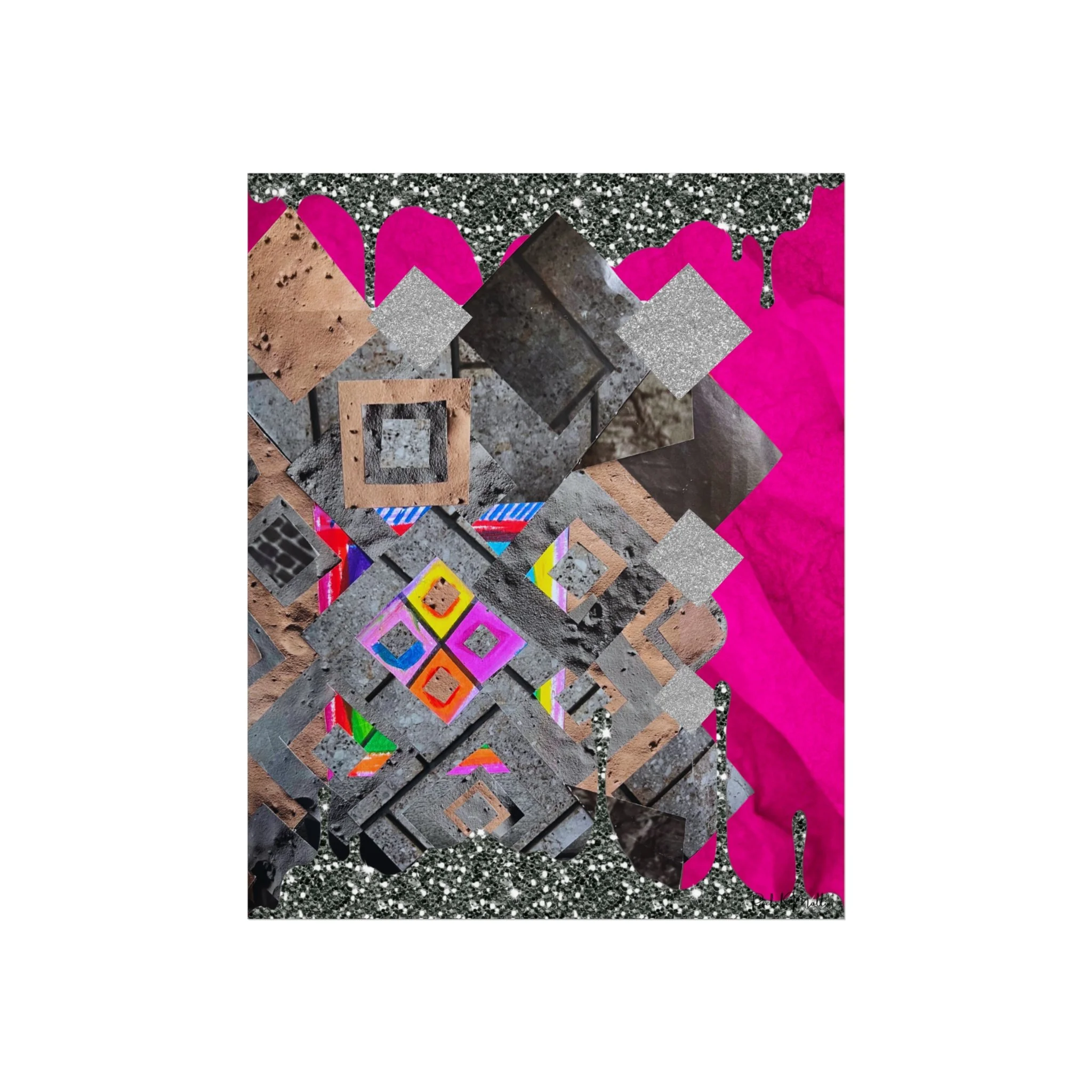 Tidal Frames submerges the viewer in liquid geometry. This collage evokes the sensation of gazing through shifting tides—moments captured mid-motion, refracted through the memory of water. Each square is a vessel, framing glimpses of natural elements like rippling waves, rain-washed glass, and mirrored sky. These visual “pools” spill across a chaotic terrain. At its heart, the piece explores how memory, like water, refuses to be contained. It flows through structures, reshapes boundaries, and leaves a trace on everything it touches. Tidal Frames invites us to consider: How do we hold on to the fluid, the fleeting? And how do we shape it into meaning?