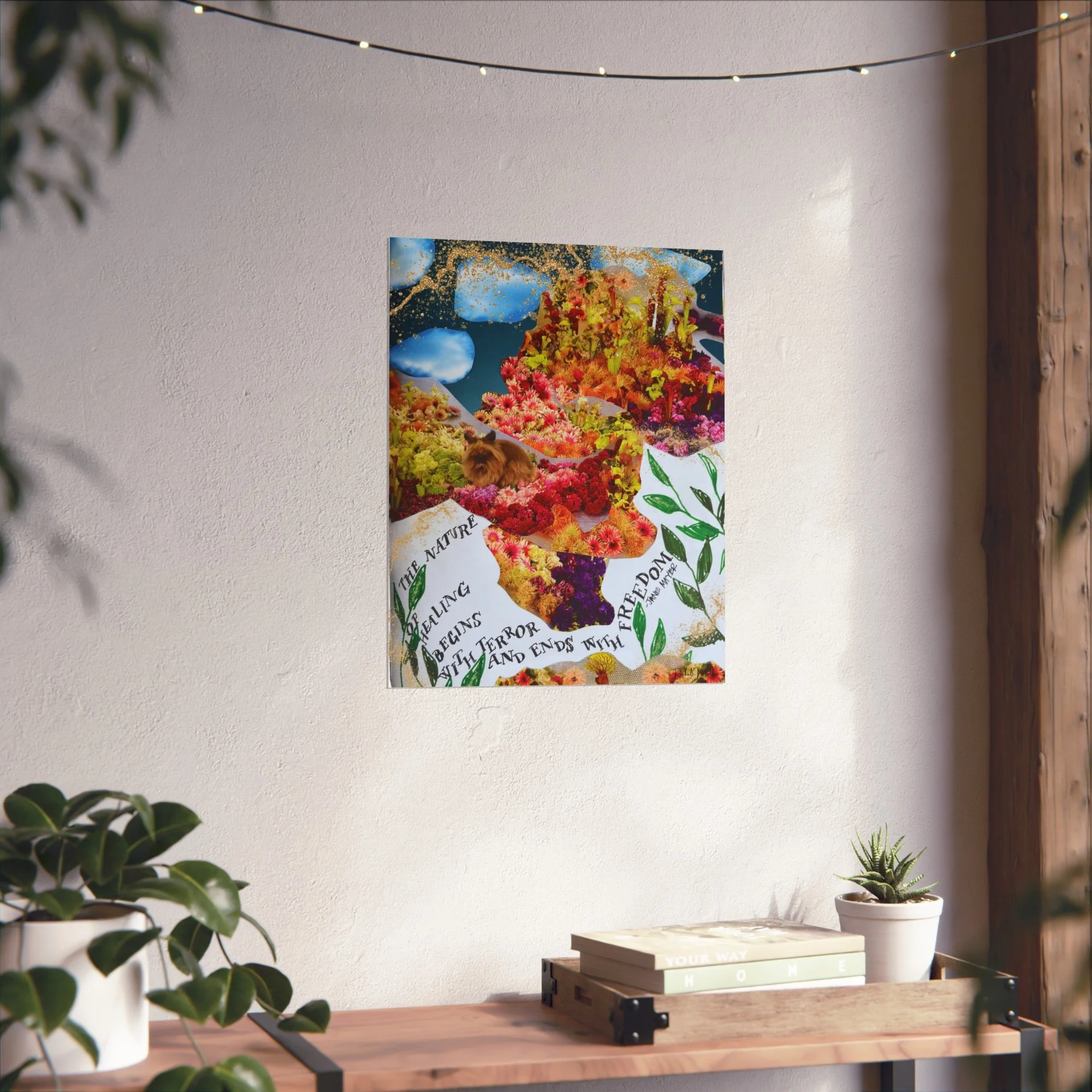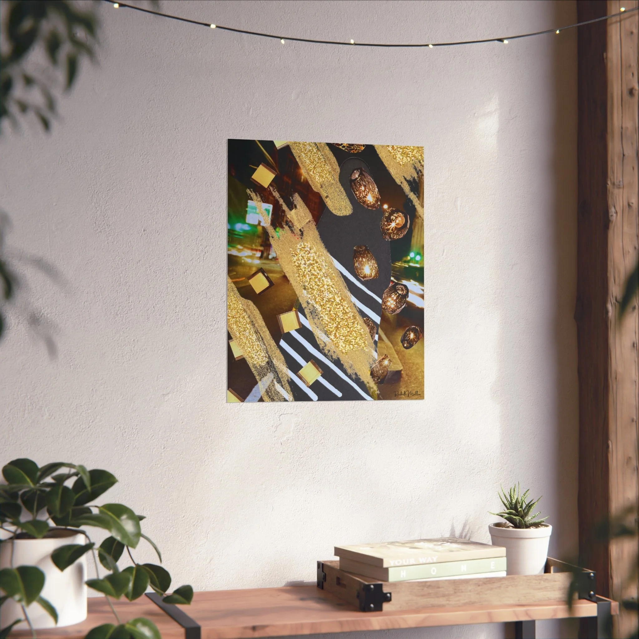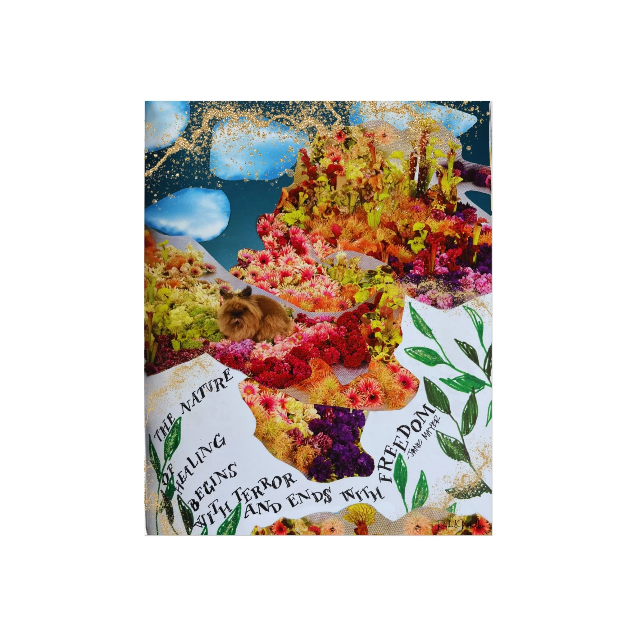 Tidal Frames submerges the viewer in liquid geometry. This collage evokes the sensation of gazing through shifting tides—moments captured mid-motion, refracted through the memory of water. Each square is a vessel, framing glimpses of natural elements like rippling waves, rain-washed glass, and mirrored sky. These visual “pools” spill across a chaotic terrain. At its heart, the piece explores how memory, like water, refuses to be contained. It flows through structures, reshapes boundaries, and leaves a trace on everything it touches. Tidal Frames invites us to consider: How do we hold on to the fluid, the fleeting? And how do we shape it into meaning?